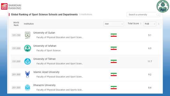 دانشگاه‌های آزاد اسلامی و خوارزمی نیز در بازه رتبه ۳۰۰-۲۰۱ جهانی قرار گرفتند. این رتبه‌بندی که از سال ۲۰۱۶ آغاز شده، عملکرد بیش از ۳۰۰ دانشگاه دارای واحدهای مرتبط با ورزش را بر اساس شاخص‌های علمی از جمله تعداد مقالات منتشر شده، میزان استنادها، کیفیت نشریات (انتشار در ۲۵ درصد برترین مجلات علمی جهان) و همکاری‌های بین‌المللی مورد ارزیابی قرار می‌دهد.