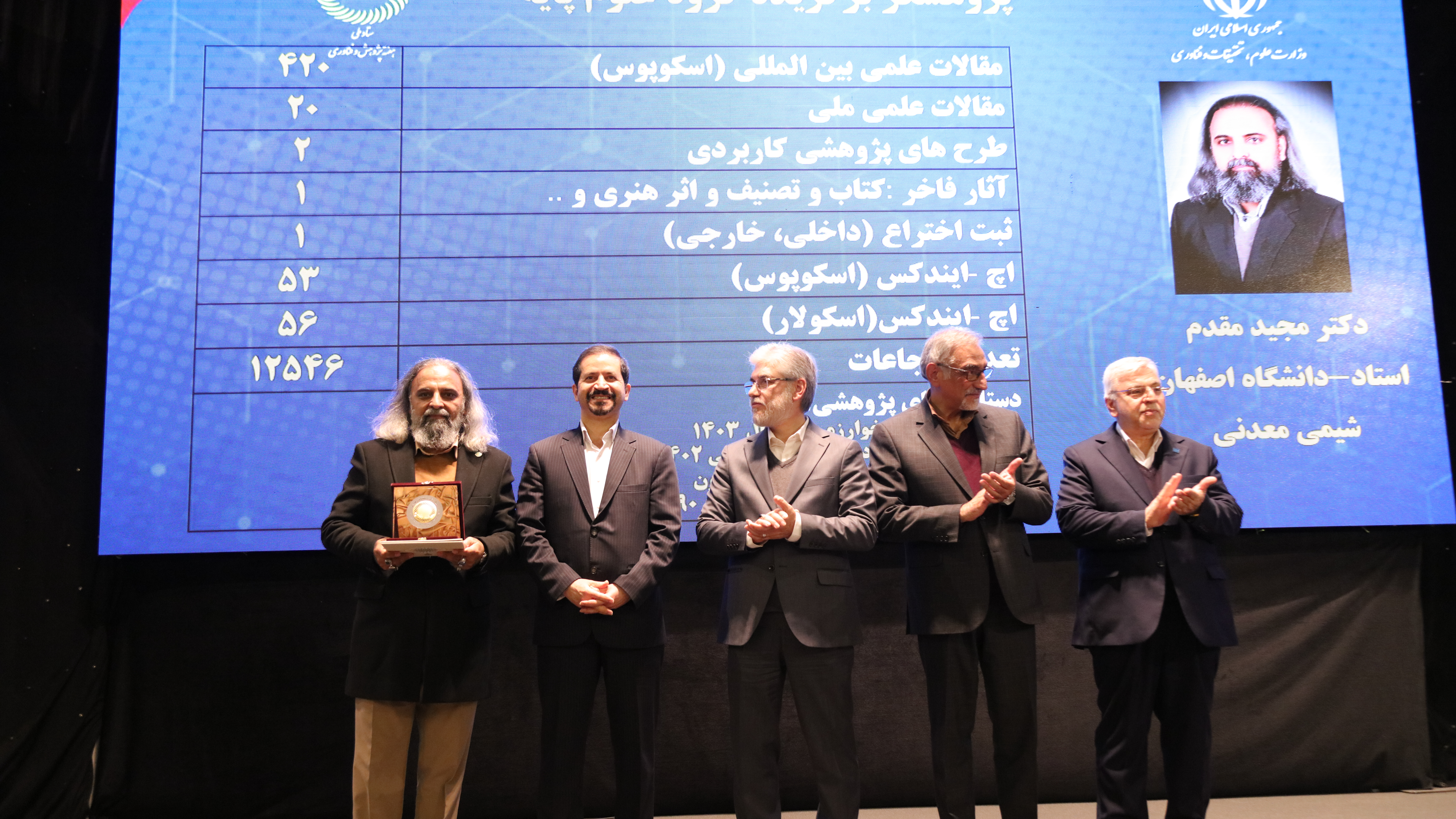 در این مراسم دکتر مجید مقدم در رشته شیمی و دکتر هاشم باقری در رشته زمین شناسی و دکتر مهدی مرتضوی در رشته مهندسی هوافضا سه عضو برگزیده هیات علمی دانشگاه اصفهان، حائز عنوان پژوهشگر برتر شدند